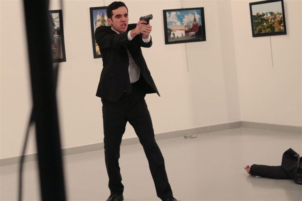 Mert Altintas, de 22 años, mató de varios disparos al funcionario del Kremlin Andrey Karlov en el momento en que inauguraba una exposición de fotos, un crimen filmado por las cámaras que cubrían el evento. Luego de disparar, gritó: «¡No olviden Alepo!» y «¡Alá es grande!».