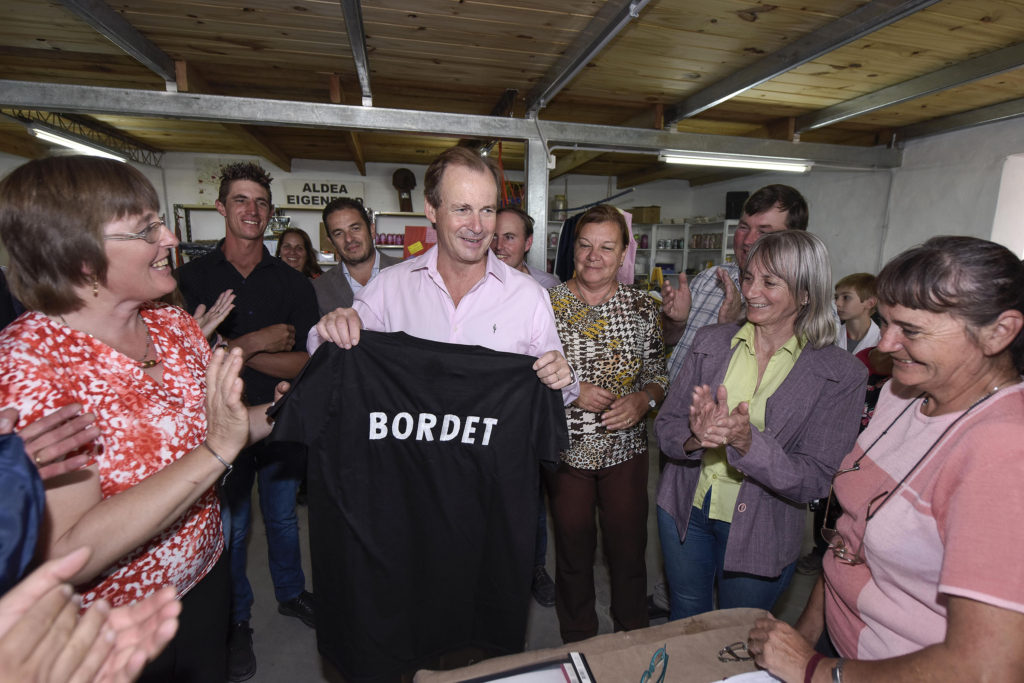 Por su parte, María Isabel Ortiz, presidenta de la cooperativa textil, Confecciones Eigenfeld y presidenta de la Junta de Gobierno de Aldea Eigenfeld, señaló que habían invitado al gobernador para que «vea y contemple en forma directa que todos los aportes y esfuerzo que hicimos con todos los vecinos, están volcados en esta fuente de trabajo que fue creada por medio del ministerio de Trabajo».